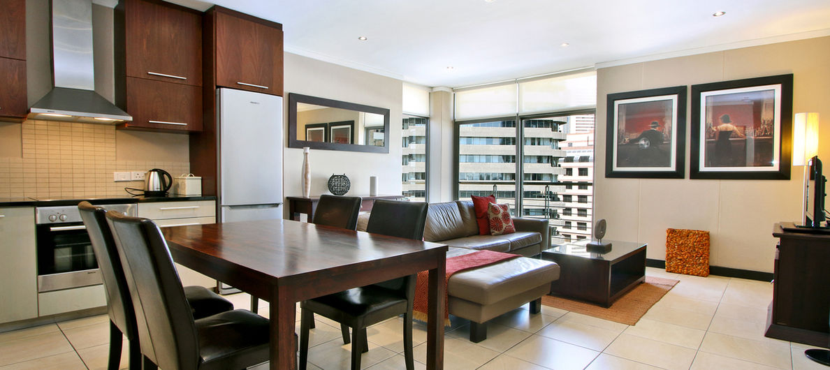 These brilliant, spacious apartments in Cape Town’s Foreshore area have breath-taking views of the City, stadium, Cape Wheel and sea harbour. The apartments are located in a lifestyle centre with a coffee shop, laundromat & grocery store. With a MyCiti bus stop on your doorstep, all of Cape Town's top tourist attractions are easily within reach.